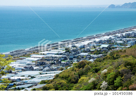 静岡市 久能山東照宮の表参道から望む駿河湾といちご海岸通りと街並み