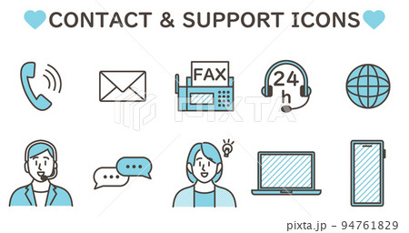 お問い合わせ、サポートサービスのアイコンセット【ベクターイラスト素材】