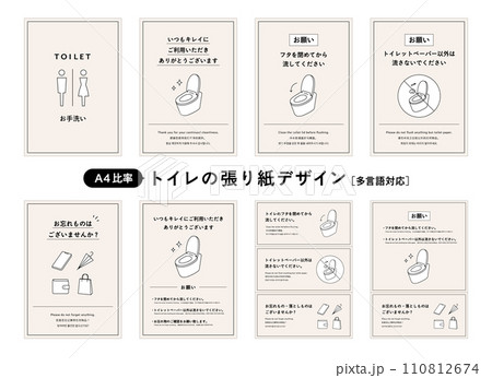 トイレの張り紙デザインセット 注意書き お願い シンプル お手洗い おしゃれ フタ いつもキレイに