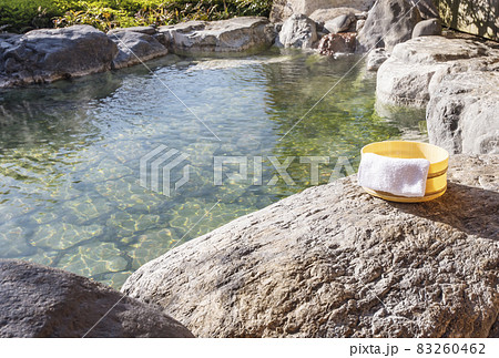 温泉 露天風呂の風景 いで湯 源泉掛け流し イメージ素材