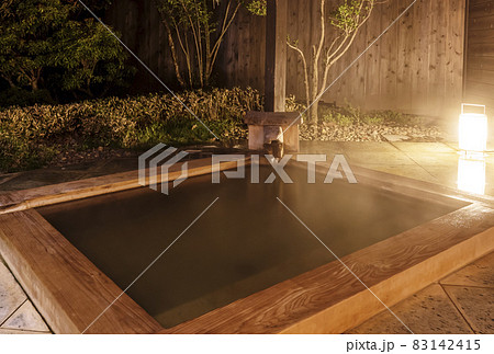 露天風呂 温泉イメージ 檜風呂 温泉情緒 源泉掛け流し イメージ素材