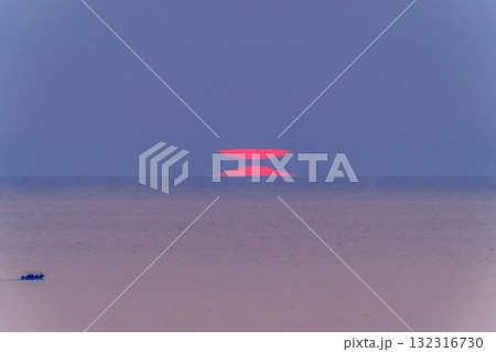 屏風岩展望台から見た日本海に沈む幻想的なダルマ夕日の情景