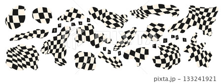 3d grid. Isometric line space. Futuristic wire pattern or mesh shape. Cyberpunk vanishing net elements. Y2k wireframe. Checkered surface. Distorted vortex. Vector cyber backgrounds set
