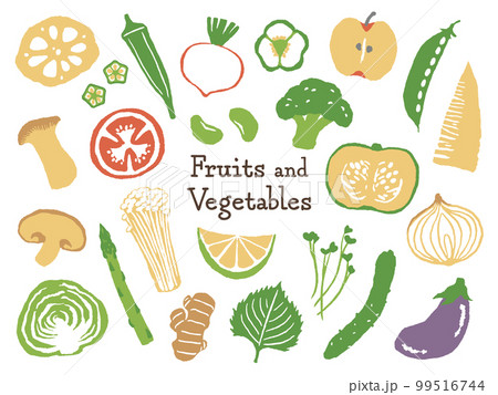 水彩画の緑黄色野菜や根菜のイラストセットベクター素材