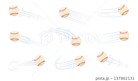 Flying baseball with airflow marks. Championship shot and pass. Movement trajectory. Track effect. Speed motion flow. Athletic match. Orb hit. Flight stream trail. Jet traces vector set