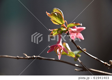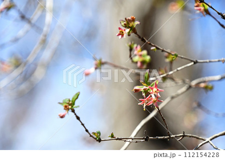 冷たい風の中、咲き出した優しい色のウグイスカグラ(鶯神楽)