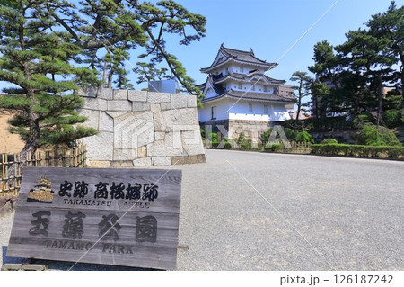 香川県高松市の玉藻公園にある夕暮れの高松城跡 東之丸艮櫓