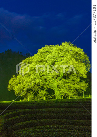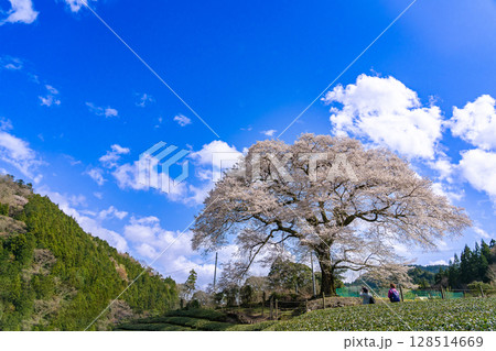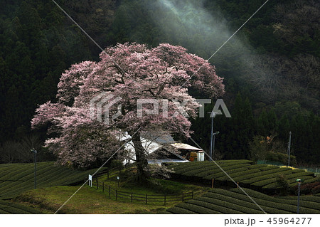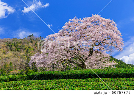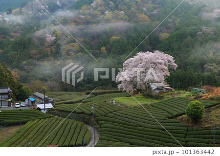 静岡県島田市川根町 茶畑の中の樹齢300年の一本桜 牛代のみずめ桜