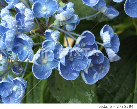 雨の日の青藤色のウズアジサイ