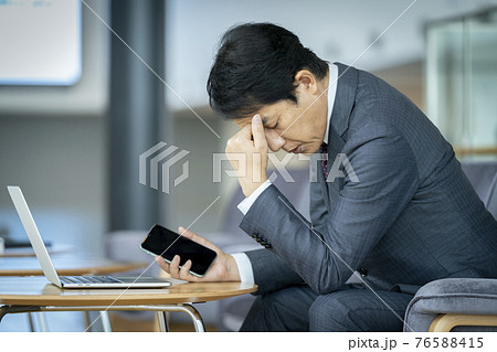 オフィスシーン イメージ パソコンの画面を見ながら頭を抱えるビジネスマン