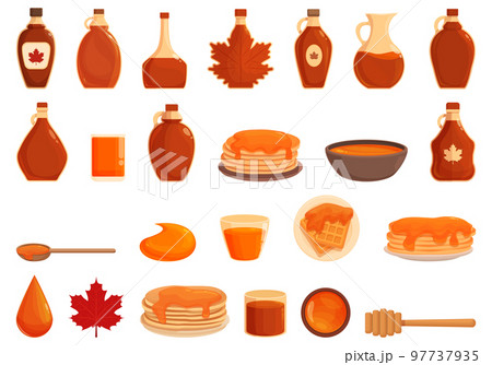 Maple syrup icons set cartoon vector. Pancake stack. Sweet kitchen