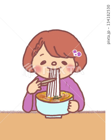 うどんをすするボブヘアの女の子