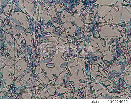 エンドウ豆の葉っぱに生えたカビの顕微鏡写真