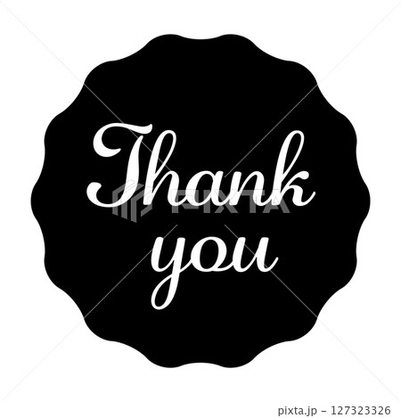 なみなみの楕円のフレームのイラスト素材 "Thank you"のメッセージ入り 黒・背景透過・白文字