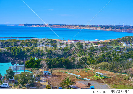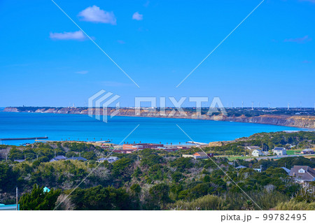 千葉県銚子市の愛宕山頂にある地球の丸く見える丘展望館から西側の眺望(屏風ヶ浦,刑部岬など)