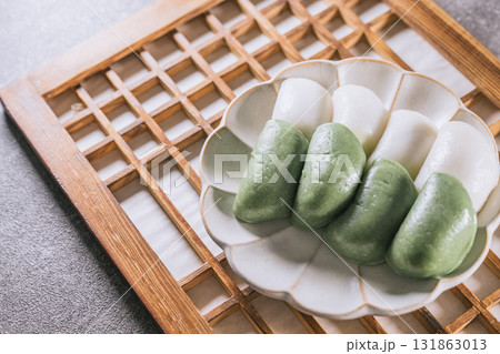 jeolpyeon, korean style Patterned Rice Cake, Short grain rice powder sieved and pressed into a rice cake mold. Unlike other rice cakes made with non-glutinous rice, jeolpyeon is quite chewy and often