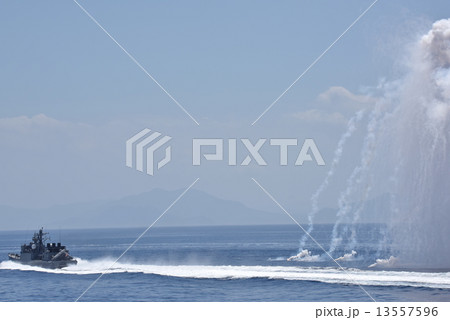 海上自衛隊 ミサイル艇 うみたか フレア発射
