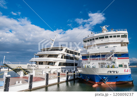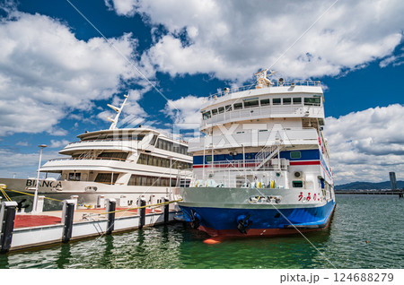 琵琶湖大津港に停泊する観光船ビアンカと学習船うみのこ