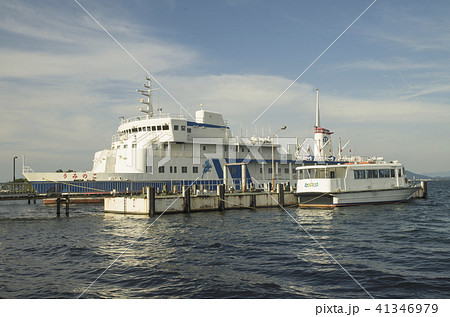 琵琶湖大津港に停泊中の学習船うみのこと出港する観光船ビアンカ