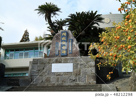 閉校した朝陽小学校 閉校記念碑とシンボルのキンカン