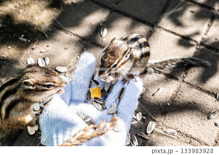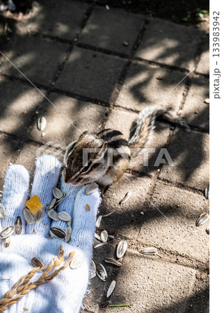 北海道道東の秋、手から食べる可愛いシマリス