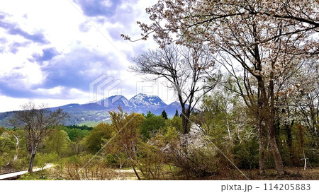 妙高を代表する観光スポット 春の妙高山といもり池の山桜