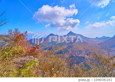 秋の群馬県 榛名山(烏帽子ヶ岳)の山頂から南東側の眺望(相馬山,二ツ岳,蛇ヶ岳など)