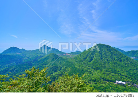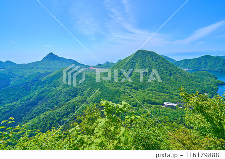 群馬県 榛名山(烏帽子ヶ岳)の山頂から南側(榛名富士,天目山,榛名湖など)の眺望