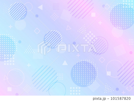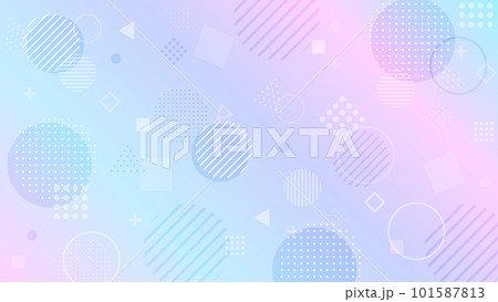 パープルブルーのグラデーションと色々な形の抽象背景 横