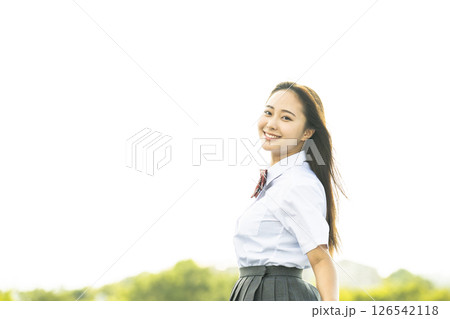 女子高生のポートレート 笑顔 カメラ目線