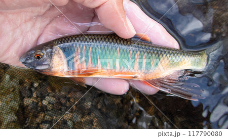 オイカワ(追河) 雄 胴拡大 美しい淡水魚