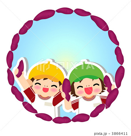 お芋掘り見出しタイトルつき園児 男 女 イラスト