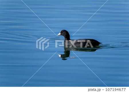 琵琶湖を泳ぐオオバン 滋賀県大津市 琵琶湖畔