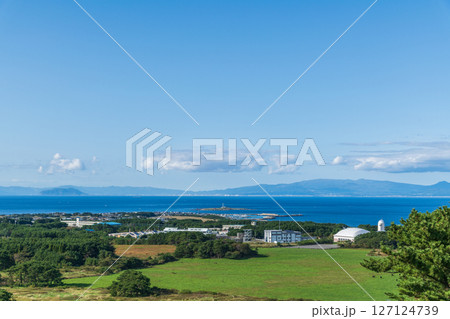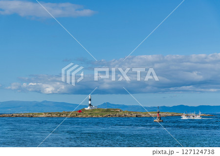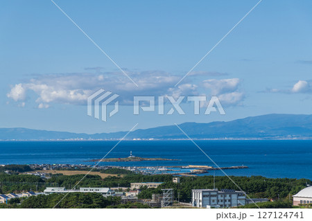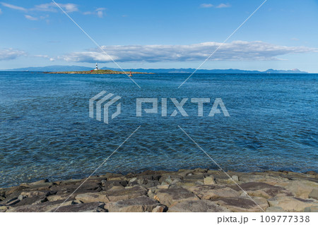 大間崎 弁天島・大間崎灯台と対岸の北海道の眺め 青森県大間町