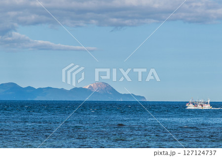 大間崎 初冠雪の恵山と北海道の眺め 青森県大間町