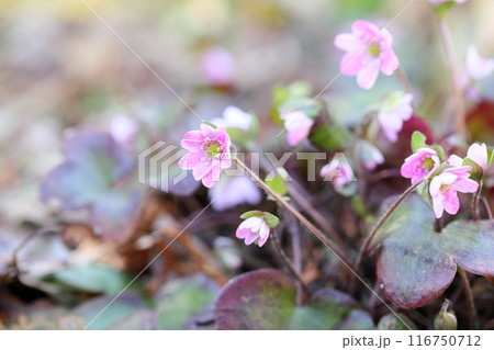 可愛い オオミスミソウの花 満開