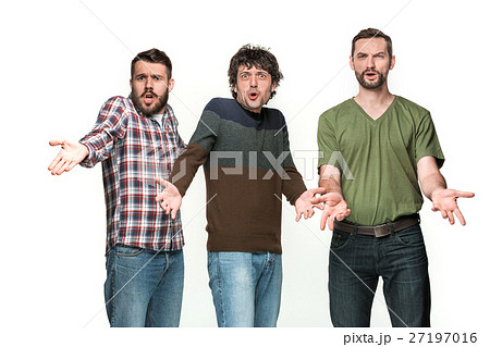 The three men are smiling, looking at camera