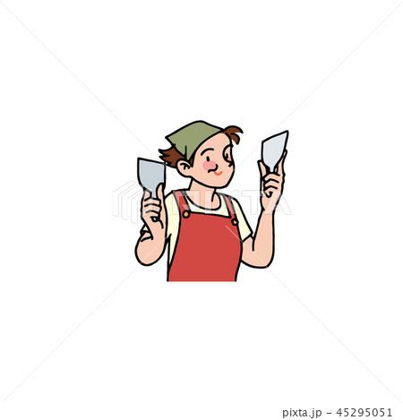 割烹着 女性 全身 働く人々 イラスト