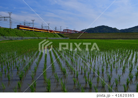 鉄道 京阪 8000系 おけいはん 淀~八幡市 水田 田んぼ 田園 水鏡 初夏 青空 雲 電車 京