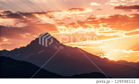 Majestic mountain peak illuminated in pink hues during a vibrant sunset