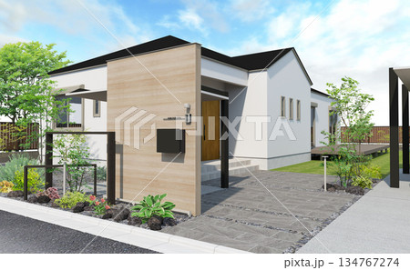お洒落な門まわりの平屋住宅