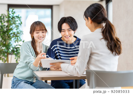 ケアマネージャーから介護プランの説明を受けるシニアの夫婦