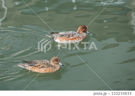 琵琶湖疏水のヒドリガモ(オスとメス)