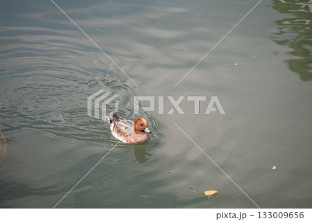 賀茂川の清流を泳ぐヒドリガモ(オス) 京都市賀茂川
