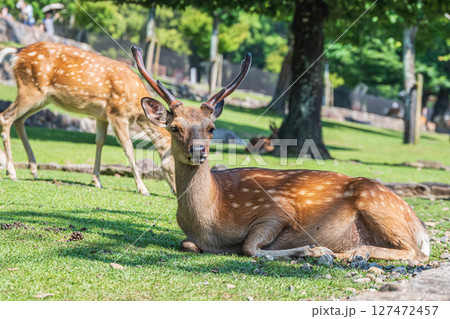 奈良公園の鹿(オスとメス) 奈良市