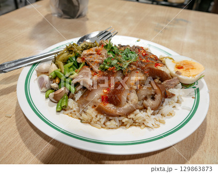 Khao Kha Moo - Thai Stewed Braised Pork Leg with Rice, Served on Plate