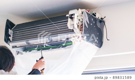 エアコン クリーニング サービス で カビ取り 洗浄 【 大掃除 の イメージ 】