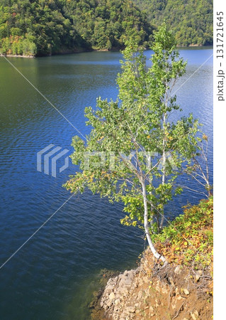 さっぽろ湖と定山渓ダム 湖面と白樺の木