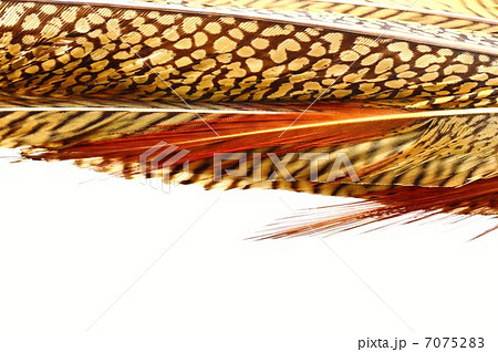 綺麗な鳥キンケイのオスの羽と尾の模様 白バック
