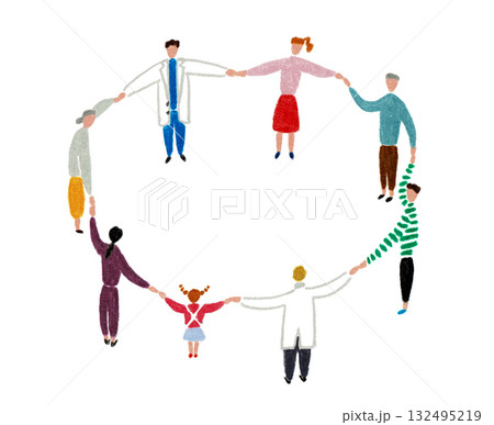手描きイラスト 輪になって手をつなぐ人々